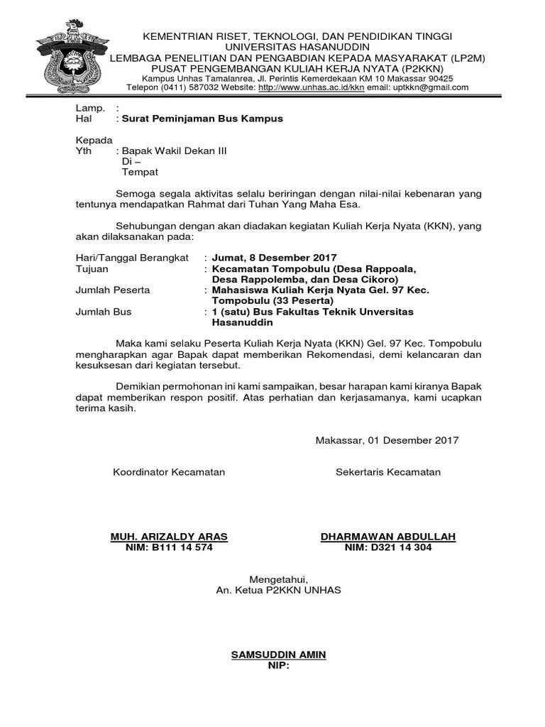 Form permohonan peminjaman mobil untuk keperluan pribadi. Memohon izin penggunaan tempat parkir untuk bus di universitas xx. D laiqa arena surat permohonan pemutusan jaringan telepon pada . Kuliah kerja nyata kelompok 116 direktorat penelitian dan pengabdian kepada masyarakat universitas muhammadiyah malang jl.raya tlogomas no. Contoh surat permohonan izin peminjaman tempat untuk kegiatan lomba.